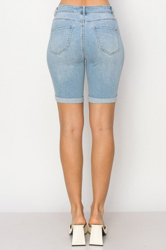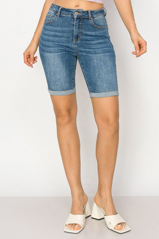 Basic Bermuda Denim Jean Shorts with Rolled Cuff