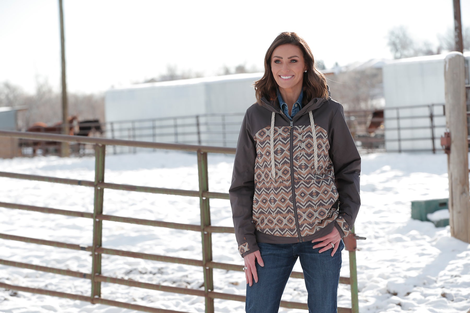 This coat is a great midweight layer! The color is a great brown color with a fun geometric print to pair with it. The plush fleece lining is so soft!