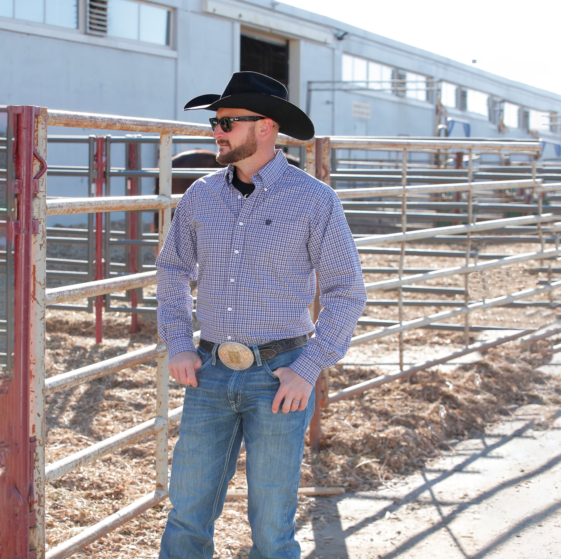 The description technically says purple, but you could call it navy! It's up to you! From Cinch, this shirt features long sleeves with a button up closure. It comes in a purple, white, and brown plaid print that is always a classic style.