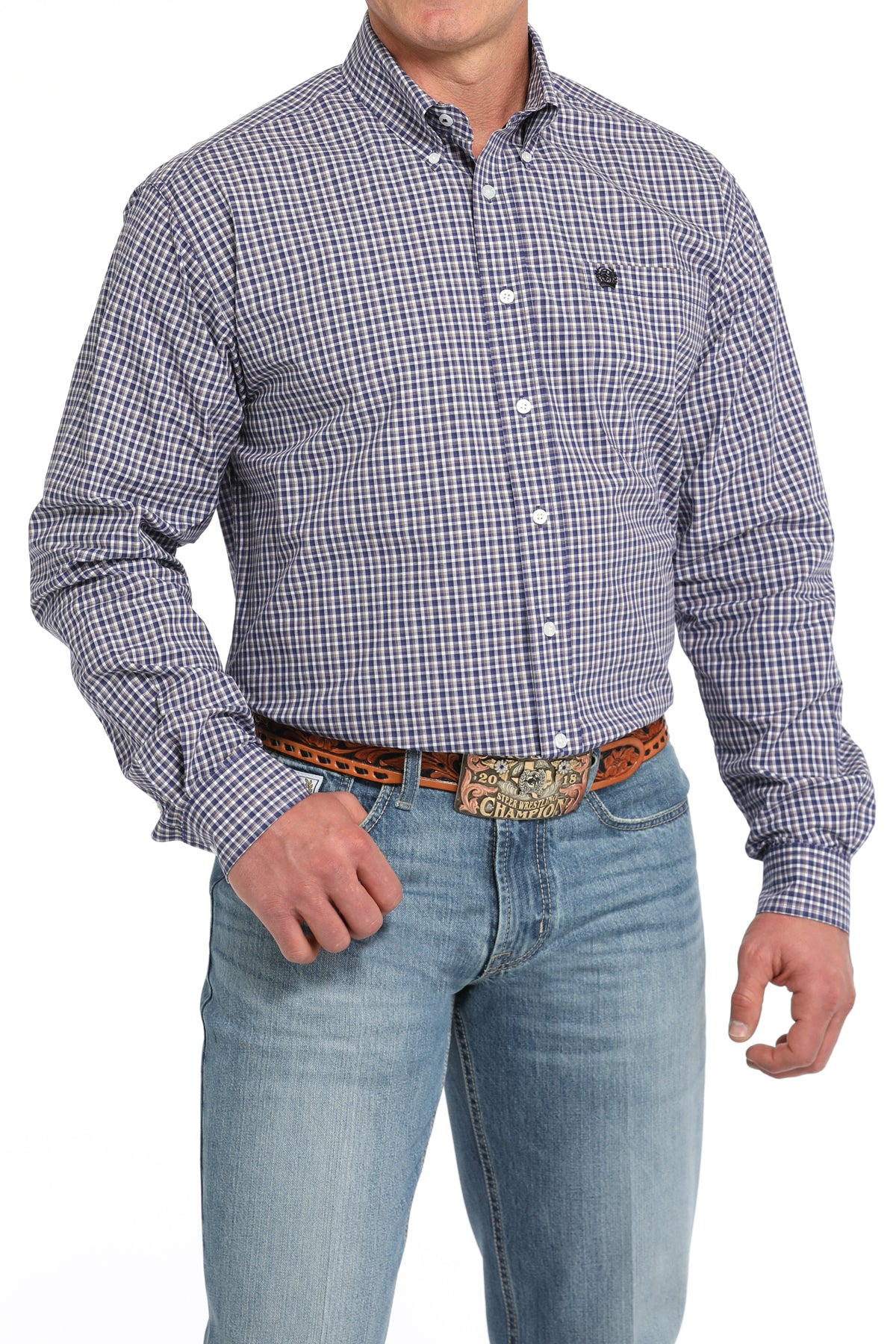 Cinch Mens Navy Plaid Print Long Sleeve Shirt MTW1105851