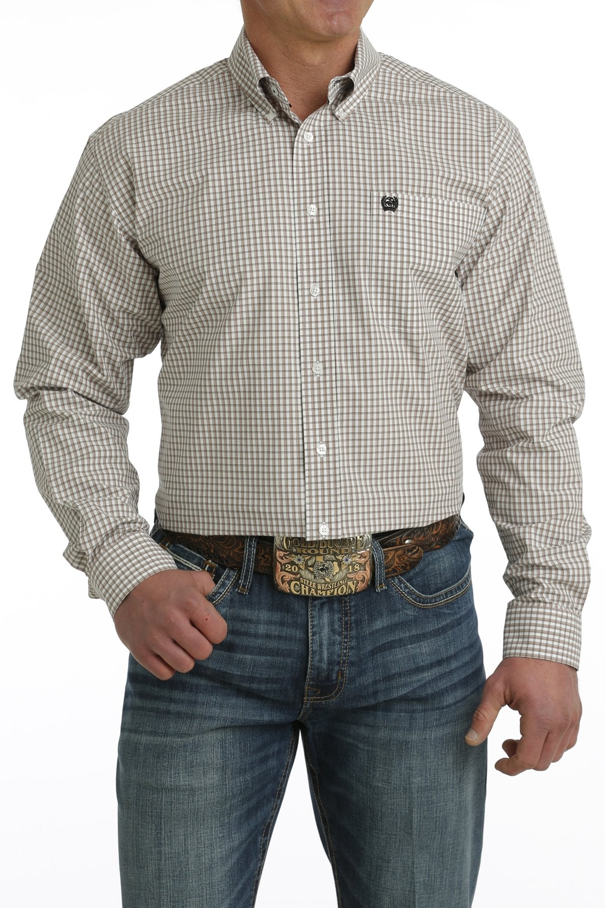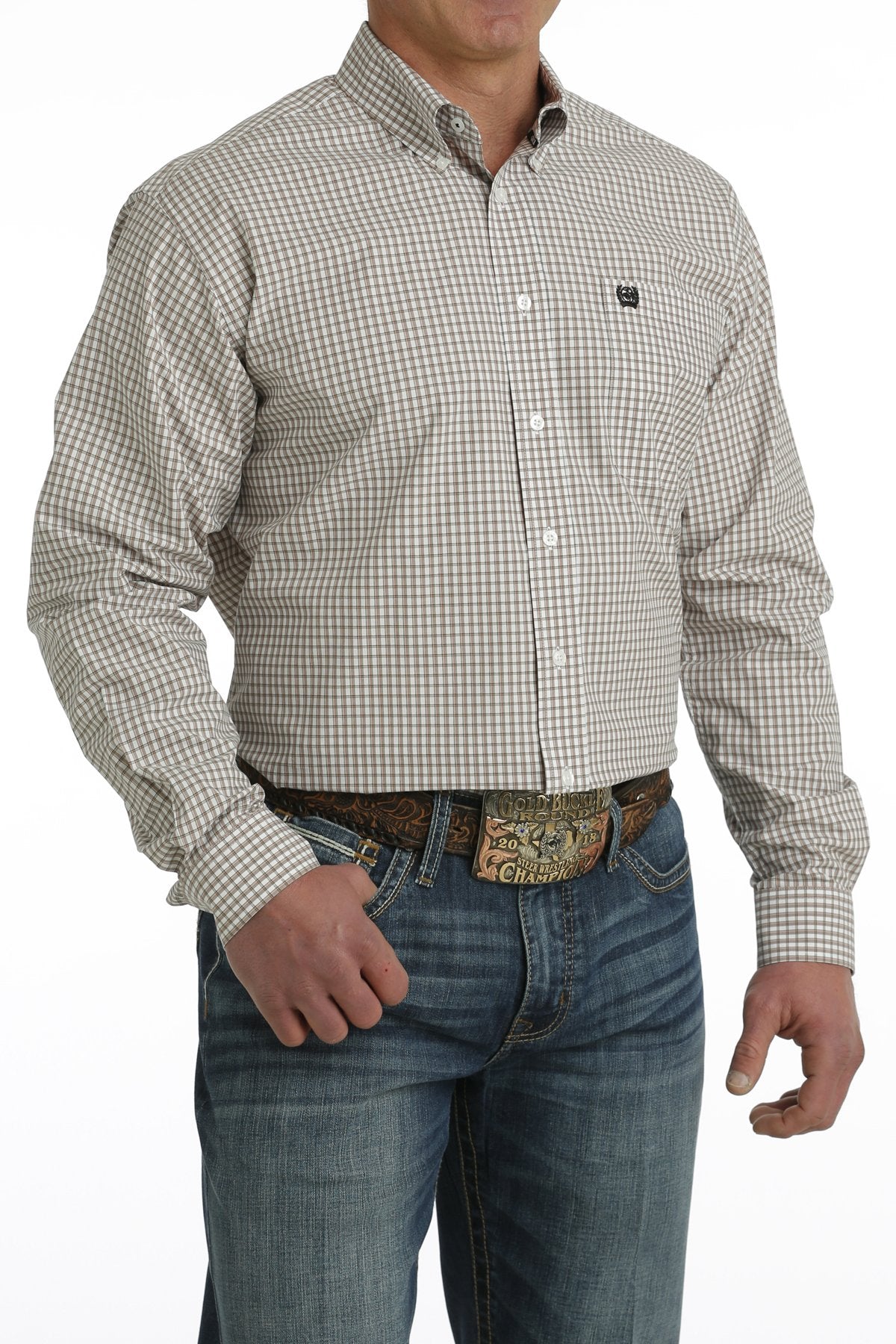 Cinch Mens Tan Small Plaid Shirt MTW1105718