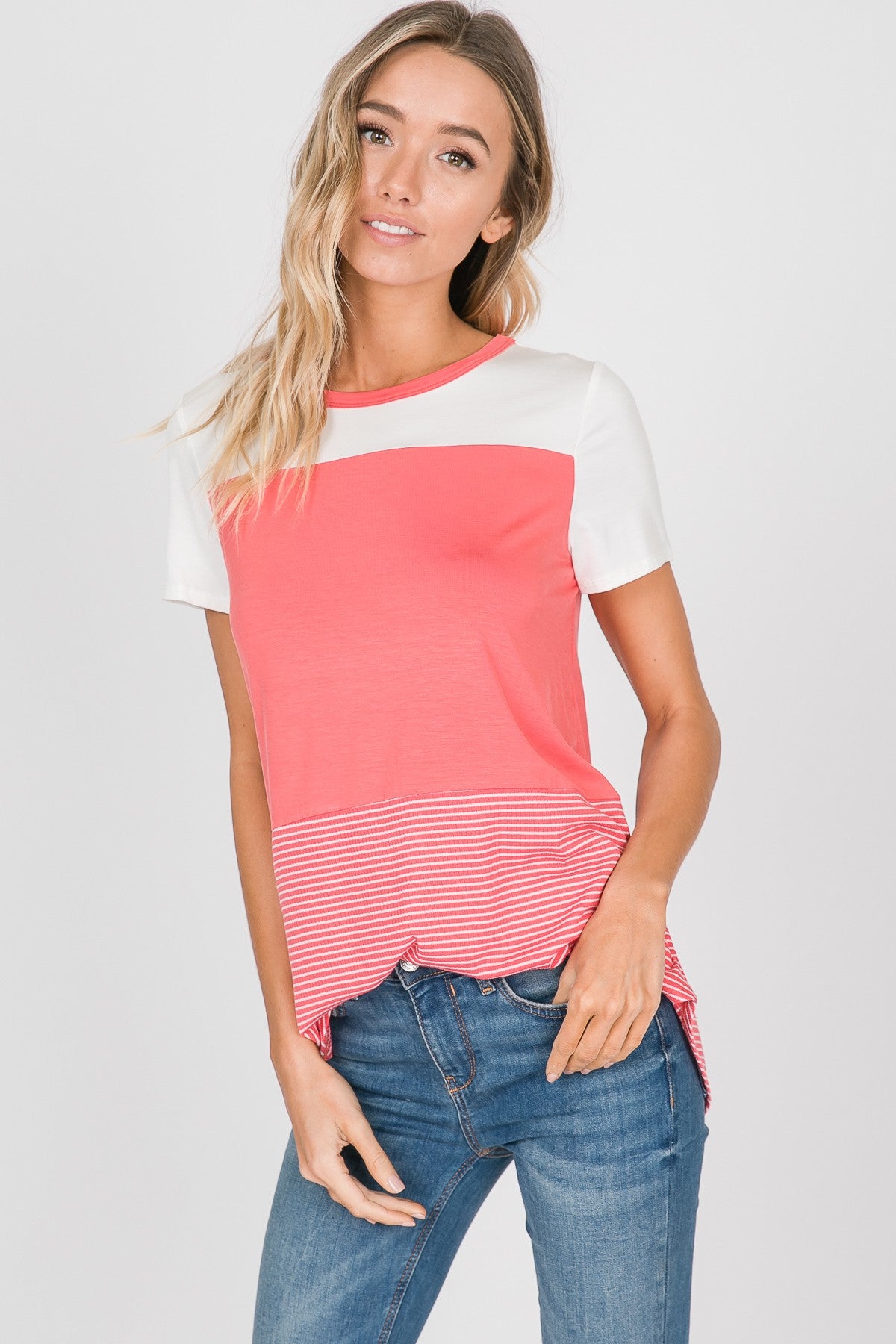 This is the perfect spring and summer shirt! It is super soft and lightweight! Fitted through the bodice and rounded hem to finish.